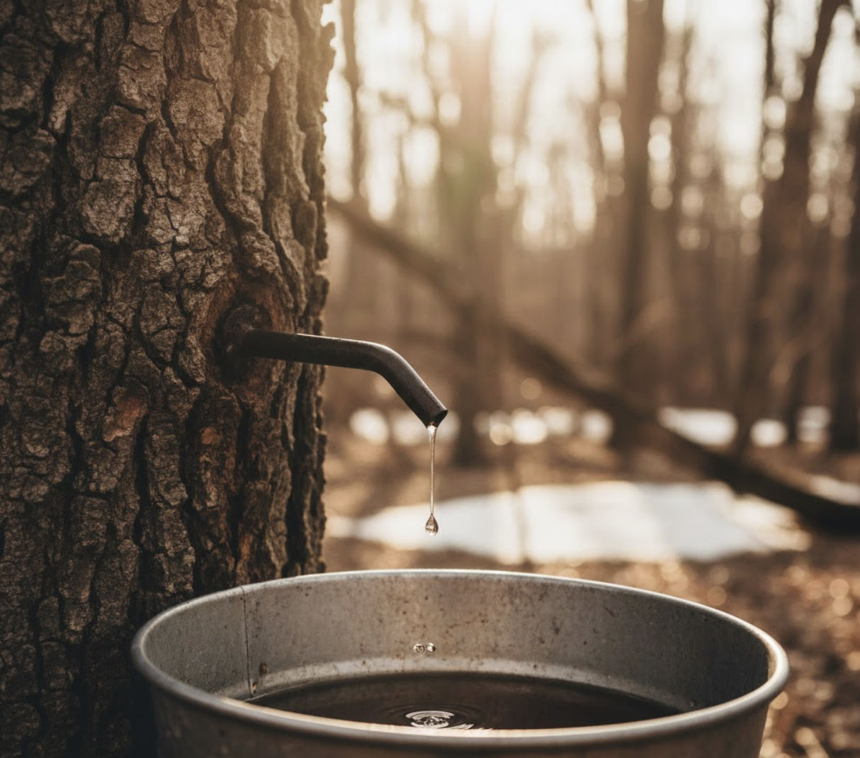 Our maple collection process respects nature's rhythm with limited tapping, natural cleaning methods, and zero synthetic chemicals.